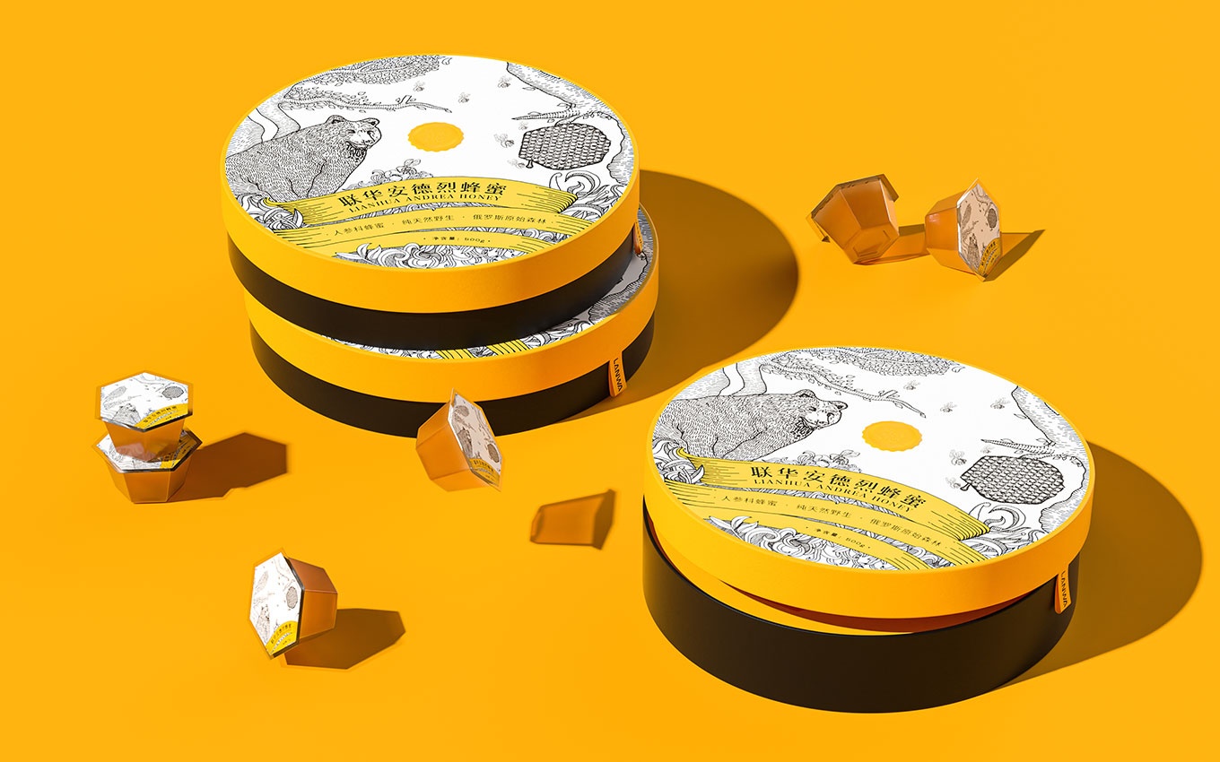 我們獨(dú)具創(chuàng)意的蜂蜜包裝設(shè)計(jì)與眾不同,與傳統(tǒng)的包裝方式有所區(qū)別,使產(chǎn)品的使用體驗(yàn)更加人性化。黑色與黃色的搭配巧妙地突出了蜂蜜產(chǎn)品的行業(yè)屬性,給人以強(qiáng)烈的視覺沖擊力,讓人一眼就能辨認(rèn)出產(chǎn)品所屬的行業(yè)。